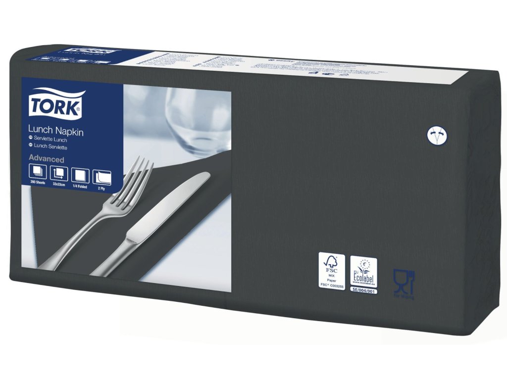 Tork černý ubrousek-oběd, 33x33cm, 2vrstvy, 1/4, 200ks