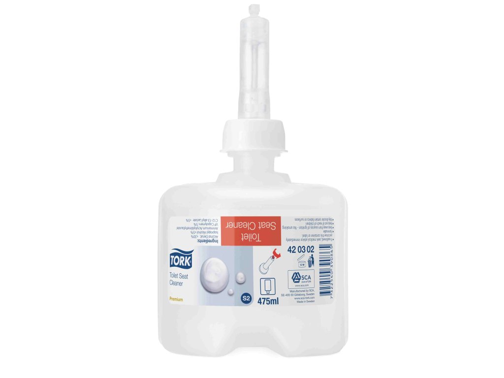 Tekutý čistič Tork Premium na toaletní prkénka NEW, jednorázová láhev včetně dávkovací pumpičky . Prioritou na toaletách jsou prostředky k mytí a sušení rukou, které podporují správnou hygienu. Mýdla Tork Premium, která čistí a zároveň zvlhčují pokožku, hrají důležitou roli při poskytování kvalitní a moderní hygieny rukou. Toalety by měly nejen splňovat hygienické potřeby,ale rovněž jejich údržba by měla být snadná, s co nejnižšími náklady, nízkou odpadovostí a vysokým repektem k životnímu prostředí. Nový systém Tork pro mytí a čištění rukou splňuje ty nejnáročnější požadavky a zajišťuje dokonalou hygienu. Zásobník tekutého mýdla a nový design obalů mýdel a čistících prostředků byly optimalizovány tak, aby fungovaly v dokonalé harmonii a aby je bylo možné snadno a rychle doplňovat. Nová jednorázová dávkovací pumpička zaručuje, že uživateli se při každém pužití dostane 1 ml mýdla nebo čistícícho prostředku, což je dostatečné množství pro řádné umytí a očištění rukou. Tím se zabraňuje nadměrné spotřebě mýdla, což značně snižuje frekvenci doplňování a výměny náplně v zásobníku.