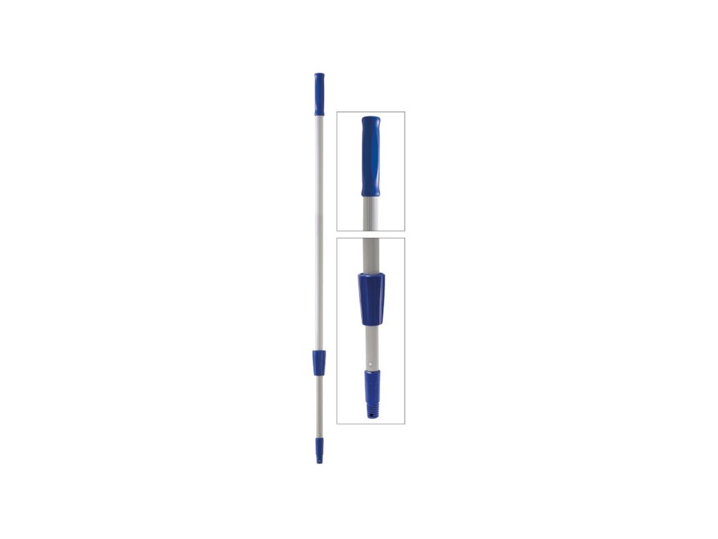 Tyč teleskopická hliníková s gumovým úchytem. Lze ji použít ke stěrkám na okna, rozmývákům a košťatům na pavučiny.