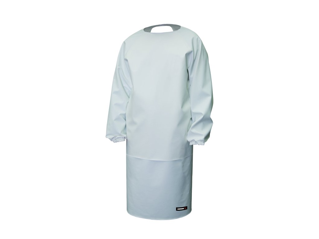 • elastické manžety, zapínanie vzadu na pracku, zosilnenie materiálu v hrudnej časti